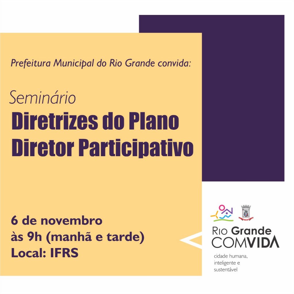 Dando sequência ao processo de constituição do novo Plano Diretor Participativo de Rio Grande, a administração municipal realizará durante toda esta quarta-feira, 6 de novembro, um seminário que vai discutir as diretrizes do plano, assim como cenários econômicos da cidade. O seminário é aberto a toda a população e será realizado no IFRS, nos períodos […]
